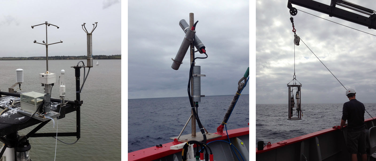left: eddy covariance set-up, centre: radiometers, right: optics rig being deployed