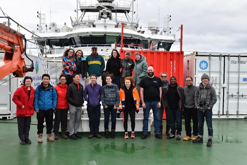 Mark Tarn, Sarah Barr, Katie Thompson and Katie Bastin from the University of Leeds work on M-Phase. Their research is focused on the effect of ice-nucleating particles in clouds over the Labrador Sea. As the climate warms, the fraction of ice to water in clouds changes, which in turn changes the reflection of light from the sun back to the atmosphere. As more ice in clouds turns to water, the reflecting properties of clouds increases and so the Arctic may experience a cooling effect. However, this effect may be mediated by the presence of ice-nucleating particles that could trigger freezing in cloud droplets even at the warmer temperatures. The Leeds team are monitoring the concentrations and sources of ice-nucleating particles in the air, but also in seawater to try to understand the contribution of Arctic rivers to these processes.